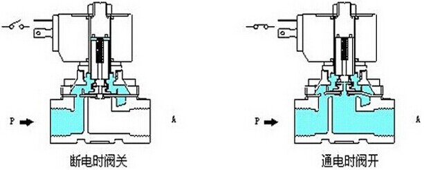 2、分布直動(dòng)式電磁閥:它是一種直動(dòng)式和先導(dǎo)式相結(jié)合的原理。常閉式---當(dāng)入口與出口沒(méi)有壓差時(shí),通電后電磁力直接打開(kāi)先導(dǎo)孔連接主閥活塞依次向上提起,閥門打開(kāi);當(dāng)入口與出口達(dá)到啟動(dòng)壓差時(shí),通電后,電磁力先打開(kāi)先導(dǎo)孔,主閥活塞上腔壓力下降,從而利用壓差和電磁力拉動(dòng)主活塞,閥口打開(kāi);斷電時(shí),靠彈簧復(fù)位關(guān)閉先導(dǎo)孔,主活塞上腔增壓,推動(dòng)主活塞向下移動(dòng),閥關(guān)閉。常開(kāi)式與常閉式相反。